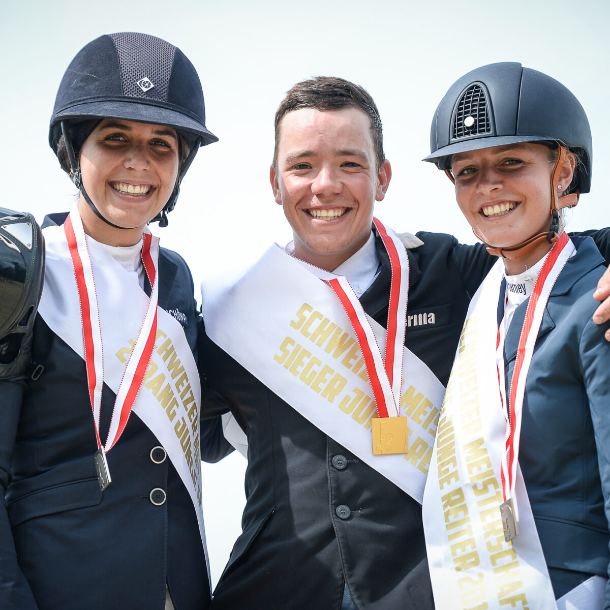 Bei den Junioren setzte sich Salome Keller mit Qualitys Girl durch und durfte sich als Schweizer Meisterin feiern lassen. Die weiteren Medaillen sicherten sich Matias Larocca mit GDE Matrix und Alexandra Amar mit Fardon.