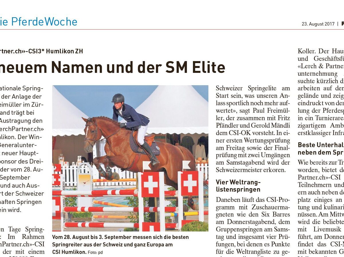 In der heutigen Ausgabe von unserem Medienpartner PferdeWoche ist eine ausführliche Vorschau auf den LerchPartner.ch CSI Humlikon zu finden. Seite 30 aufschlagen – und lesen!