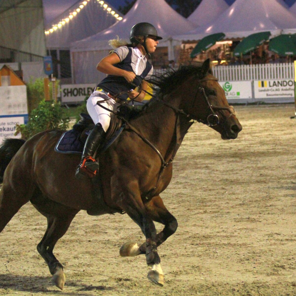 MIt ihrem ersten Pferd Con Suerte H CH hatte Alexandera Grossenbacher aus Wangen bei Dübendorf eine frühe Startnummer, übernahm gleich die Führung und behielt diese während einer langen Zeit. Dann musste sie sich Malaika Plüss aus Effrektikon mit Up Date und Felix Graf aus Bättwil mit Cardigan Boy geschlagen geben. Doch die Zücherin hatte noch ein weiteres Ass im Ärmel respektive ein zweites Pferd unter dem Sattel, nämlich die 8-jährige Stute Imagine H CH, mit der sie als zweitletzte Starterin in den Parcours kam. Sie liess die Stute, die Ruedi Guyer, Bubikon, gehört, vorwärts galoppieren und schlug nicht nur sich selber mit ihrem ersten Pferd sondern auch die beiden anderen Konkurrenten und setzte sich damit auf Platz 1 und 4 der Rangliste.