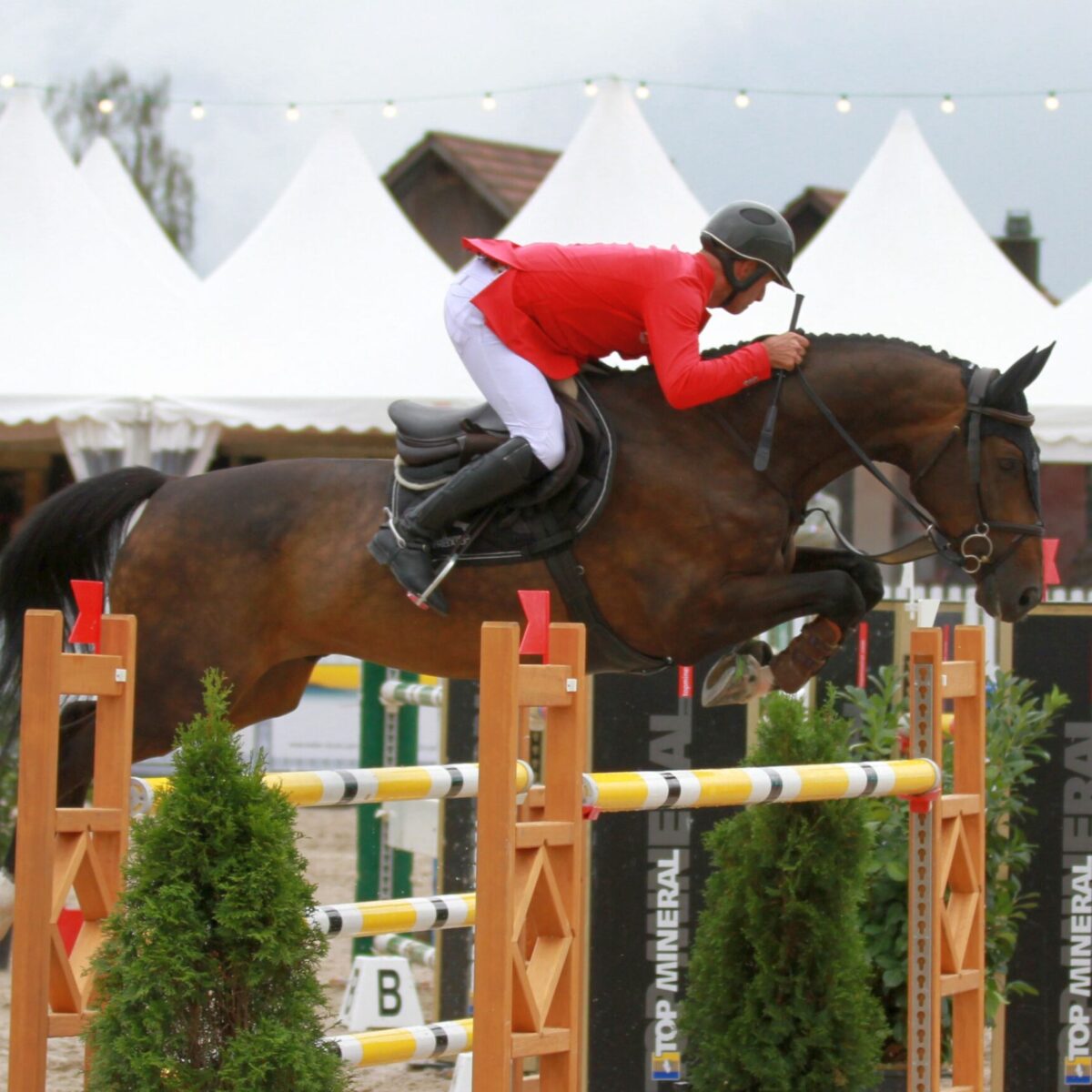 Mit Pius Schwizer siegt einer der erfolgreichsten Springreiter des Landes in der ersten Wertungsprüfung der Schweizer Meisterschaften, die dieses Jahr erstmals in den LerchPartner.ch CSI Humlikon integriert sind. Der 55-jährige aus Oensingen im Kanton Solothurn war im heutigen Zeitspringen, dem Preis der Landolt + Co. AG, Bauunternehmng, Kleinandelfingen, als drittletzter Starter an der Reihe. Im Sattel des 10-jährigen Balou Rubin schlug er die bis anhin führende Evelyne Bussmann, die übrigens regelmässig mit Pius Schwizer trainiert. Die Amazone aus Ersingen im Kanton Bern ritt dabei die Schweizer Stute Fleury d’Aveline CH. Die drittschnellste Zeit gelang Paul Estermann mit Curtis Sitte gefolgt von Adrian Schmid (Rang 4) mit Camilla IX, Martin Fuchs (5.) mit Victoria, Daniel Etter (6.) mit I am Samourai. Ebenfalls schnell und fehllos blieben Niklaus Schurtenberger mit Quasimodo VII (7.) sowie Lucas Sturzenegger (8.) mit Espoir VII und Rachel Bächler mit Rubis Tame (9.). Als schnellster Reiter mit einem Abwurf schaffte es auch noch Edwin Smits mit Dandiego B Z in die TopTen.