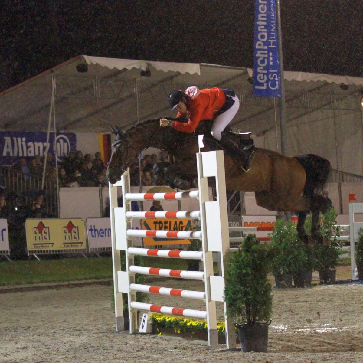 Trotz zum Teil starker Regenfälle „hielt“ der Boden, nicht zuletzte auch dank dem grossen Einsatz der Parcours-Crew bis zum Ende dieses Tages so gut durch, dass die Six Barres ohne Sicherheitsbedenken durchgeführt werden konnten.