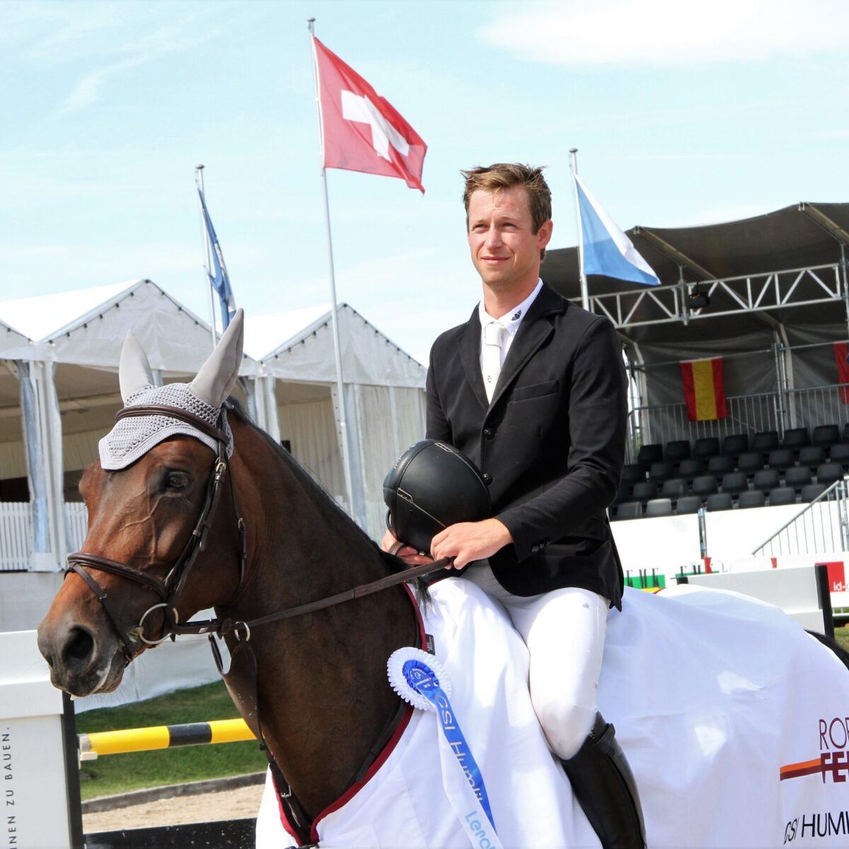 Im Sattel von Ingrid und Albert Grobs sprunggewaltigem 8-jährigen Holsteiner Call me Carly gewann Dominik Fuhrer den Preis der Sanicolar AG, Attikon/Winterthur, weshalb auch in der zweiten Einstern-Prüfung, diesmal der Grossen Tour, die Schweizer Nationalhymne erklang. Auch der zweite Rang ging in die Schweiz: an den Zuger SM-Teilnehmer Andreas Hugener mit HS Gondra. Dritter wurde der Holländer Niels Bulthuis mit Blue Silver.