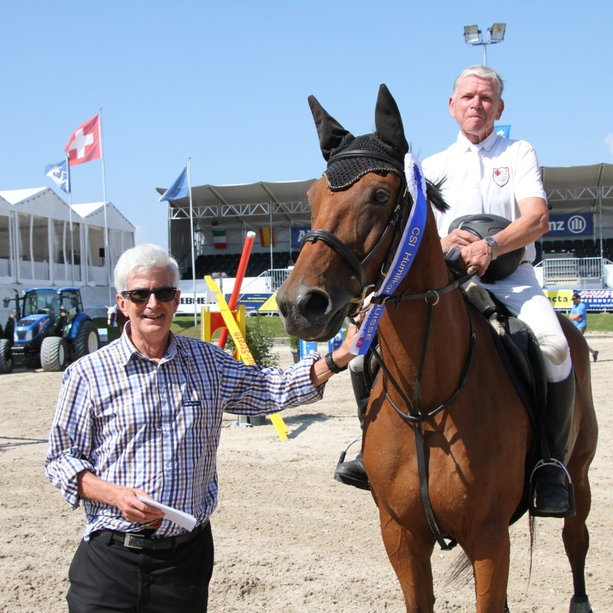 Sie sind neu am LerchPartner.ch CSI Humlikon, die Ü45-Springen über 90 Zentimeter am LerchPartner.ch CSI Humlikon und sie fanden auf Anhieb grossen Anklang. Die Preissumme für beide Springen wurde von Dr. Peter Brunner, Rüeschlikon, gestiftet, der es sich auch nicht nehmen liess, den Sieger persönlich zu beglückwünschen. In beiden Prüfungen hiess der gewinner Ludwig Luhr, Willisdorf. Er sass dabei im Sattel der schnellen Franzosenstute Solvala des Champs. Im ersten Springen verwies er Urs Bär aus Ebmatingen mit A Little Gun und Willi Rufer, Ellighausen, mit Sunnyboy V auf die Ehrenplätze. Bei der zweiten Prüfung belegte Startreiter Hansjörg Muhl aus Büttenhardt mit Comet den 2. Rang, Dritter wurde Hans Lüthy aus Schöftland mit Everest Bellboy Z.