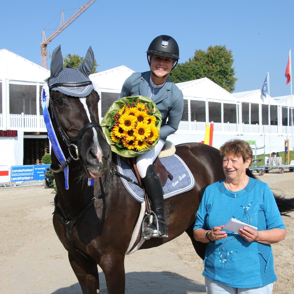 Die Siegerin im Preis der Senioren-Vereinigung SVSCR, ein SEN110/115 heisst Yasmin Wüest. Die Römerswilerin gewann die Prüfung im Satel der 11-jährigen Cara Bella, mit ihrem zweiten Pferd Neva Grace CH belegte sie Rang 5. Dawischen klassierten sich Remo Konrad, Jonen, mit Kasaya CH auf Rang 2 vor Norbert Schwitzer, Muolen, mit Kamira II CH und Nicole Meier, Klingnau, mit Otto des Tess.