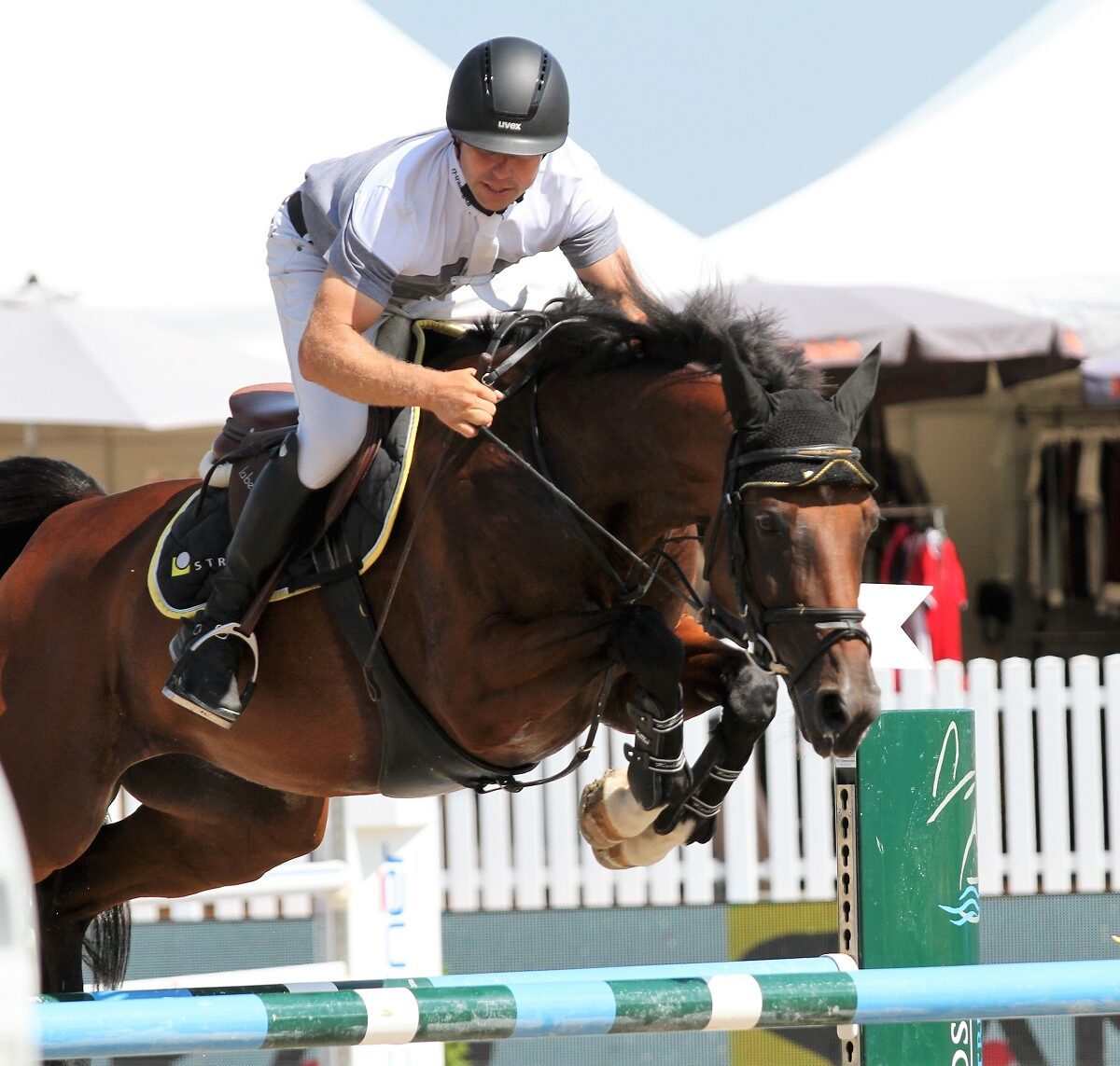 Im vergangenen Jahr hat Andreas Hugener aus Oberägeri am LerchPartner.ch CSI abgeräumt mit zwei Siegen und zwei zweien Plätzen. Heute fährt er weiter, womit er 2018 aufgehört hatte: mit einem Sieg. Im Preis der Sanicalor AG, Attikon/Winterthur, einem internat. Einsterne-Springen der Grossen Tour nahm er wieder jede Abkürzung, die er finden konnte und seine HS Gondra, mittlerweile 10-jährig, machte mit. „Sie ist mittlerweile ja sehr routiniert und es macht einfach nur Spass mit ihr“, sagte Hugener. Seine Zeit von 58,61 Sekunden war nicht zu toppen, der zweitplatzierte Dominik Fuhrer war fast 4 Sekunden weniger schnell. Der 3. Rang ging an Deliah Oertli mit Heidefee III.