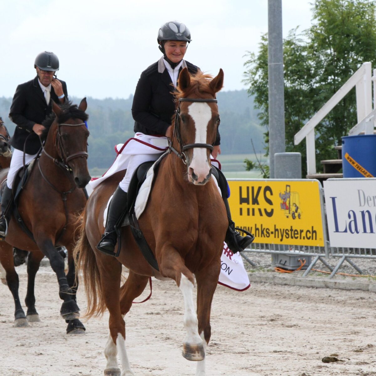 Der LerchPartner.ch CS Humlikon 2020 hat seine erste Gewinnerin: Im ersten B/R90 des ersten Turniertages war Eveline Zemp aus Abtwil die Schnellste. Im Sattel der 18-jährigen Hannoveranerstute Erle entschied sie den Preis von Herrn Dr. Peter Brunner, Rüschlikon, vor Rico Buser aus Sissach mit Bulahrouge T.S und Tanja Luginbühl, Winterberg, mit Goliath X.