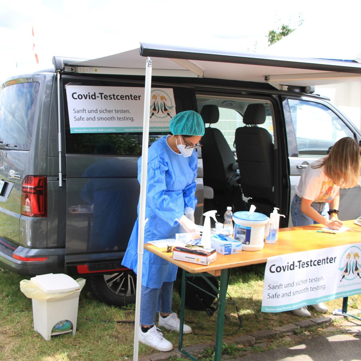 Wer sich testen lassen muss, kann dies im Test-Bus im Eingangsbereich. Das Apomobil ist eine Kooperation zwischen dem Testzentrum Morgental und Apodoc und bietet Antigen-Schnelltests mit einem Nasen-/Rachenabstrich. Das Testergebnis liegt in 10 bis 15 Minuten vor, das ausgestellte Zertifikat bleibt 48 Stunden lang gültig.