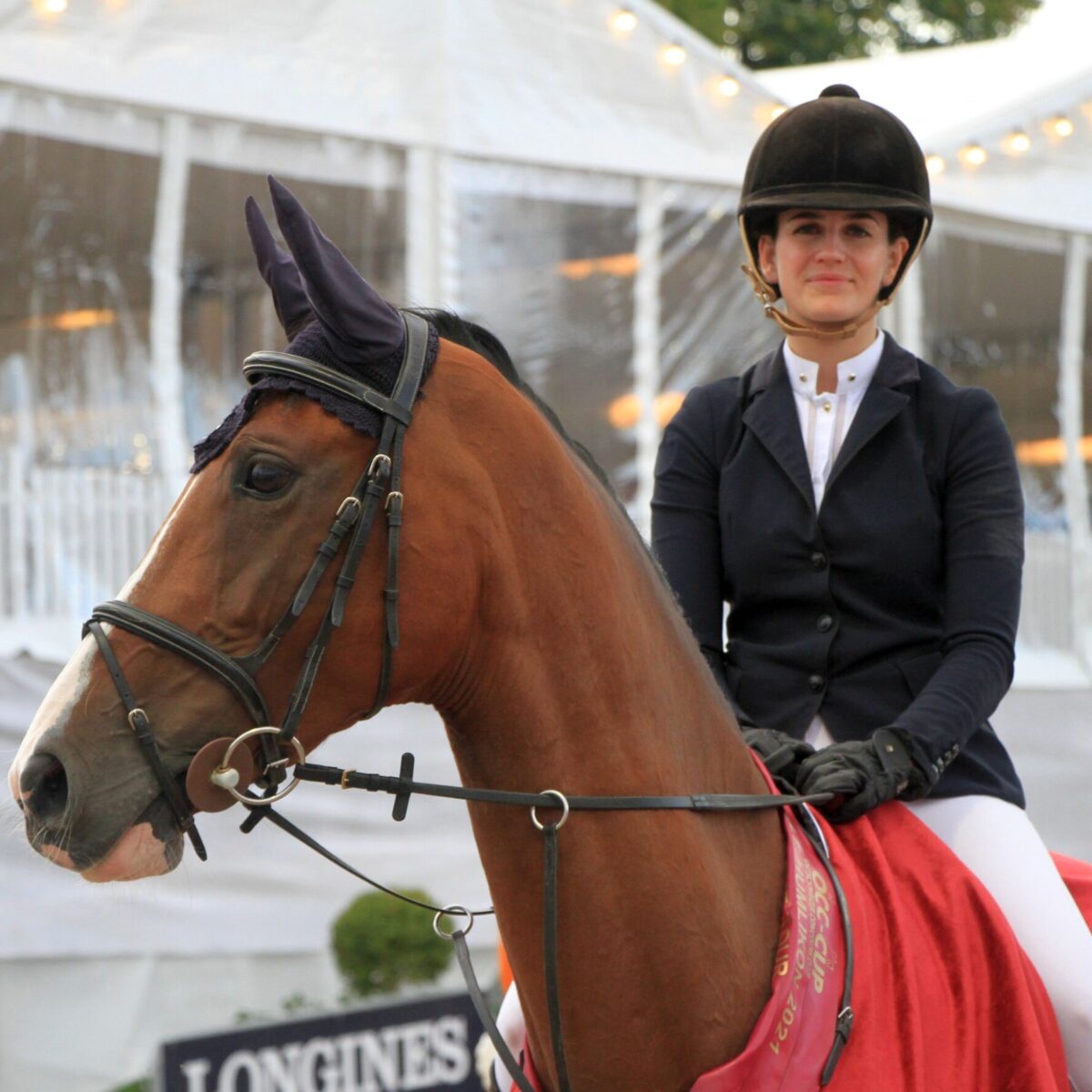 Joyana Fäh aus Gossau, die Enkelin des bekannten Pferdehändlers Xaver Fäh nimmt an OCC-Qualifikationen und OCC-Finals teil, seit sie 16 Jahre alt war, ist auch schon im Grossen Final gestartet und erzielte heute ihren bisher grössten Sieg: mit der erst 8-jährigen Ilibria, die sie vor einem Jahr ihrem Grossvater abkaufen konnte, sicherte sie sich als letzte Starterin ein einem spannenden Stechen den Kleinen Final im OCC-Cup 2021, den Preis der Naku Steinhandel AG, Basadingen. „Ilibira ist ein tolles Pferd, sehr vorsichtig, mit einer super Einstellung zum Sport“, schwärmt ihre 23-jährige Reiterin, die in einem Treuhandbüro arbeitet. Vor einem Jahr war die Siegerin der Qualifikationen in Maienfeld und Gossau mit Ilibria auch schon im Kleinen OCC Cup-Final dabei. „Das war jedoch einer meiner ersten Turniere mit Ilibria und ich konnte damals noch nicht um den Sieg mitreiten“ erzählt Joyana Fäh.