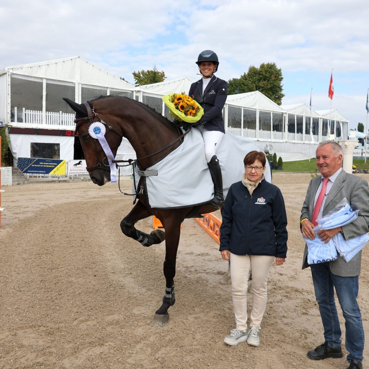 Nomen est omen: Das Stockmass von Grand Zara beträgt über 1.80 Meter. „Trotzdem ist sie super zu reiten und im Parcours schnell und wendig“, schwärmt ihre Reiterin Ariane Muff von der 7-jährigen Holsteiner-Stute. Im Youngster-Springen für 6- und 7-jährige Nachwuchspferde, dem Preis der Swiss Team Trophy, stellte die Dunkelbraune diese Rittigkeit eindrücklich unter Beweis: kein anderes Pferd überwand die Hindernisse so schnell fehlerfrei wie Grand Zara.