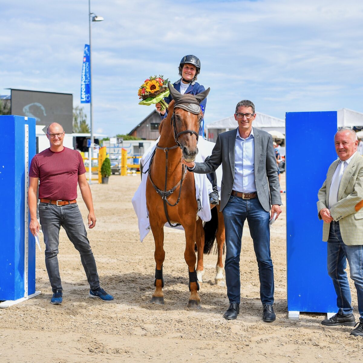 Vor den Augen von zahlreichen Mitarbeitenden, Kundinnen und Kunden der Zürcher Kantonalbank, die im VIP-Restaurant ein feines Mittagessen genossen, entschied Ester Sennhauser den Preis der Zürcher Kantonalbank für sich. Die erfahrende Berufsreiterin aus dem thurgauischen Bettenwiesen, die vor zwei Jahren in Humlikon Final und Jahreswertung des OCC-Cups gewonnen hatte, ritt Urs Stillharts zwölfjährigen Westfalen Countdown V am schnellsten fehlerfreie über den Parcours. Der zweite Rang ging an die Dritte aus der vorangegangenen Prüfung: Melanie Mändli aus Winkel mit dem 9-jährigen Sweet Harry Potter. Und der Sieger des R/N120 vom Vormittag, Bruno Fuchs aus Henau holte sich mit Feeling des Iris erneut einen «Podestplatz», ausserdem ritt er sein zweites Pferd Gaia de la Cence auf Rang 5. Dazwischen schob sich Tamara Weber aus Ballwill mit Skinny von Worrenberg.