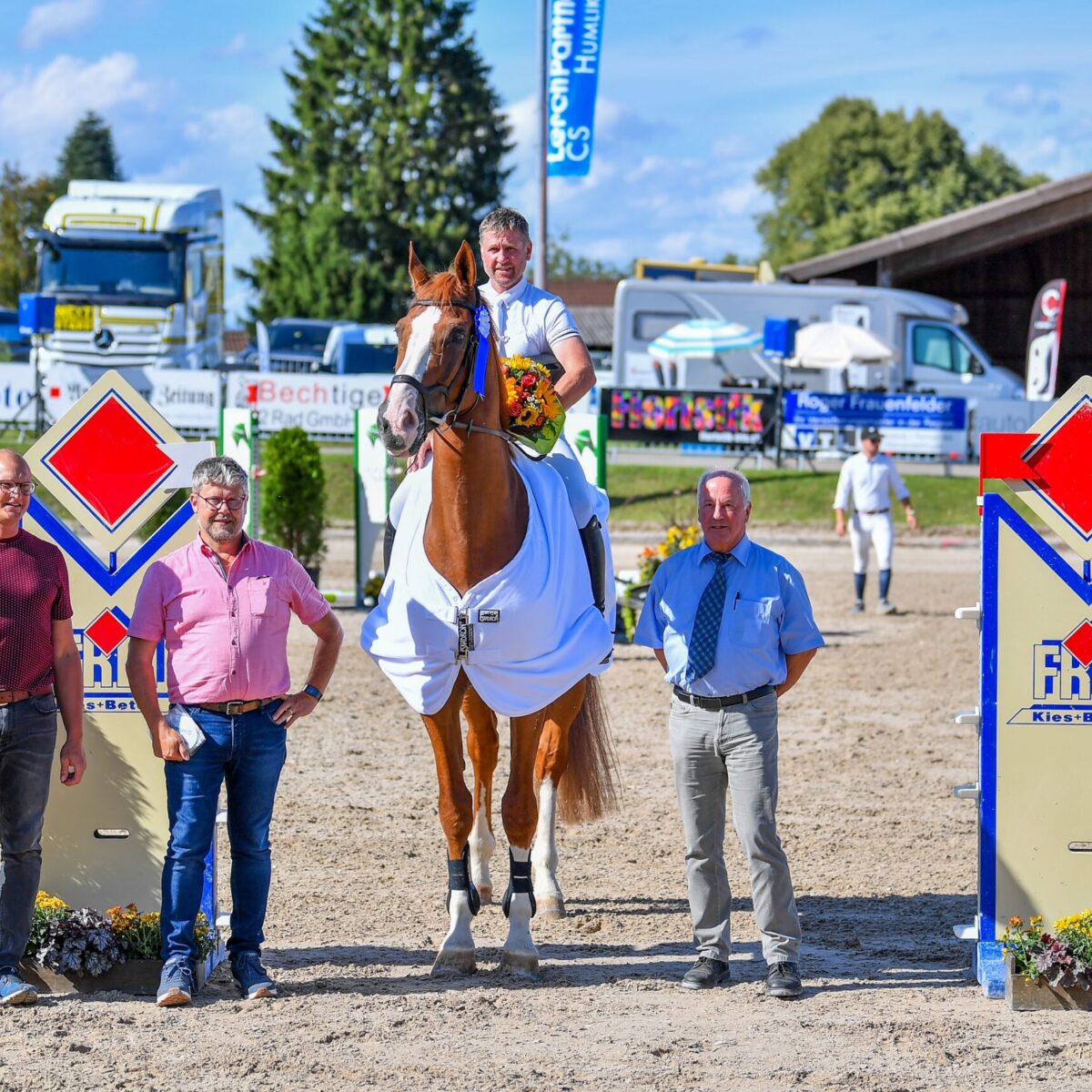 Für die erste Springprüfung am LerchPartner.ch CS Humlikon 2023, die nationalen Reiterinnen und Reitern offen stand, der Preis der Kies- und Betonwerk Frei AG, ein N135 nach Wertung A mit Zeitmessung, hatte Felix Schwitzer aus dem sanktgallischen Zuckenriet die schnellen Hufeisen montiert: Der Hufschmid gewann im Sattel des 12-jährigen Oldenburgers Casanova II mit einem knappen Vorsprung auf einen anderen «Schnellreiter»: Andreas Hugener aus Alosen bei Oberägeri mit seiner erprobten CH-Stute Gondra CH. Der dritte Rang ging an Thomas Buholzer aus Eschenbach mit Elektra D vor Kate Gygax aus Adliswil mit Vigo Mail und Lily Steinmann, Wängi, mit Sublime des Sources CH.