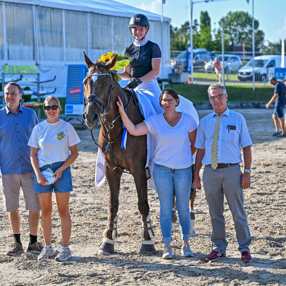 Auch die zweite und letzte Prüfung des heutigen Tages, der Preis der Badertscher Handes & Invest AG über 95 cm ist entschieden: das Zweiphasen-Springen wurde entschieden von einer „Einheimischen“: Angela Hunziker aus Marthalen gewann im Sattel des bereits 20-jährigen aber offensichtlich noch topfitten Verdi IV. Die beiden absolvierten die zweite Phase fehlerlos in 19.7 Sekunden. Zweite wurde die Dritte der Vorprüfung: Alessandra Haka sass dabei auf dem Franzosen Voltige des Sables. Dritte wurde Chiara Haas aus Unterägeri mit Desmond VA vor Michelle Blättler aus Oberglatt mit Heidi F und Jost May aus Oetwil am See mit Clara della Kotta.