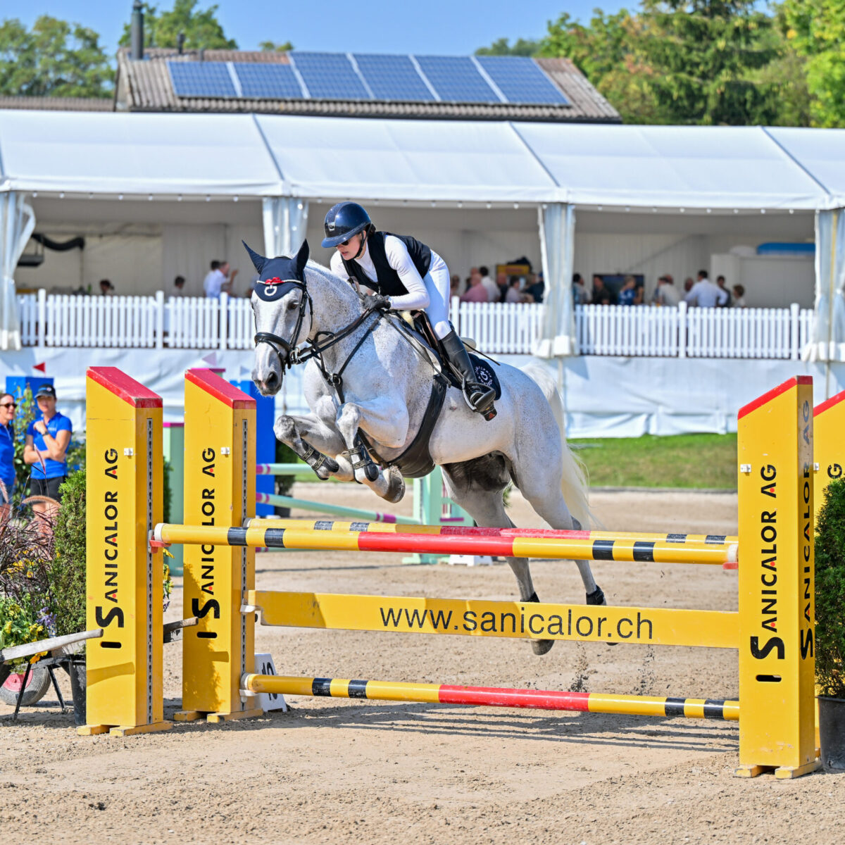 Auch die zweite Prüfung von heutigen Turniersonntag ist entschieden: Im Preis der BWT Bau AG, einem R/N105 gewinnt Isabella Noll aus Ermatingen mit der 15-jährigen Schimmelstute Ecarina – eine tolle Leistunggssteigerung nachdem die beiden im R/N100 am Vormittag noch 8 Strafpunkte notierten. Nun waren die beiden fehlerlos und fast eine halbe Sekunde schneller als das zweitplatzierte Paar Alessia Amsler, Mörschwil, mit Lady Dallas II. Die beiden waren übrigens die ersten Sieger am LerchPartner.ch CS Humlikon 2024 – Alessia Amsler und Lady Dallas hatten am Mittwochnachmittag schon das B/R90 gewonnen.