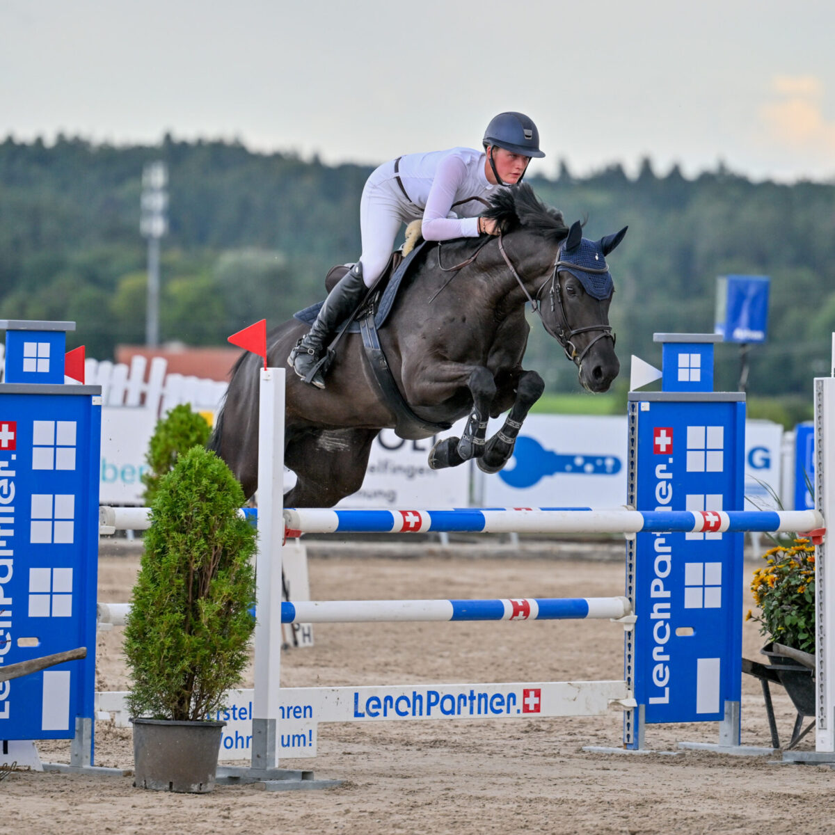 Nach acht Stunden Jungpferdeprüfungen ging es am LerchPartner.ch CS Humlikon weiter mit dem Preis der Steger AG Haustechnik, einem R/N 110 in zwei Phasen. In beiden Phasen fehlerfrei und am schnellsten wurde der Parcours von der Juniorin Madeleine Eisenegger aus Gossau absolviert. Sie sass dabei im Sattel der Rappstute I’m A Special Girl und durfte bei der Siegerehrung ihre Preise und den Siegerstrauss aus den Händen von Barbara Widerin von der Steger Haustech AG entgegennehmen. Mit exakt einer Sekunde Rückstand belegten Lilly Steinmann und Babel Oued Courcelle den 2. Rang vor Jessica Jucker aus Sirnach mit Gentleman des Tours. Den vierten und fünften Rang belegte Nina Blanz, Schaffhausen, mit ihren beiden Pferden Alenaa und Isinaa.