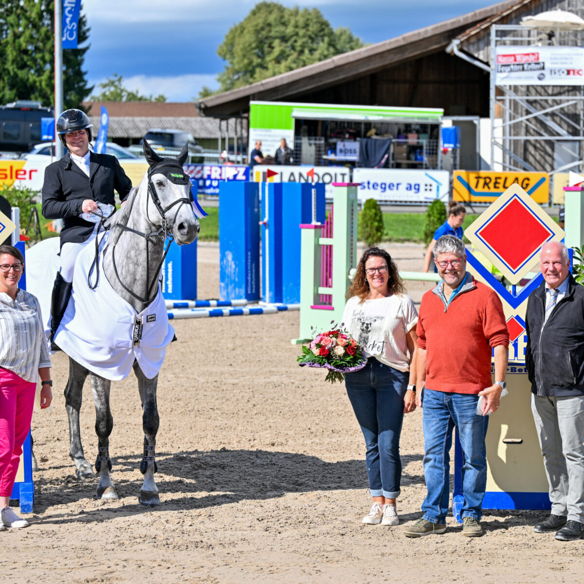 Die erste nationale Prüfung am diesjährigen LerchPartner.ch, der Preis der Kies- und Betonwerk Frei AG über 1.35 Meter nach Wertung A mit Zeitmessung blieb fest in Männerhand. Der Sieg ging an den Galgener Philipp Züger mit dem 10-jährigen Belgier Patis VDB. Für die Siegerehrung setzte Züger auf sein zweites Pferd PB Sinoire und durfte sich Blumenstrauss und Siegerpreis von Sandra und Urs Berger als Vertreter des Prüfungssponsors überreichen lassen. Mit einem Rückstand von 0.67 Sekunden platzierte sich Raphael Jud, Dotnacht, mit Diazarro von Riggenberg auf dem 2. Rang vor Timo Heiniger, Stein, mit Maddox MB, Dominik Wiesner, Zunzgen, mit Latte Macchiato M und Leon Hänzi, St. Gallen, mit Contarini. Als erste Amazone auf der Rangliste klassierte sich Chantal Huwiler, Cham, mit Pilot du Roset CH auf dem 6. Rang.